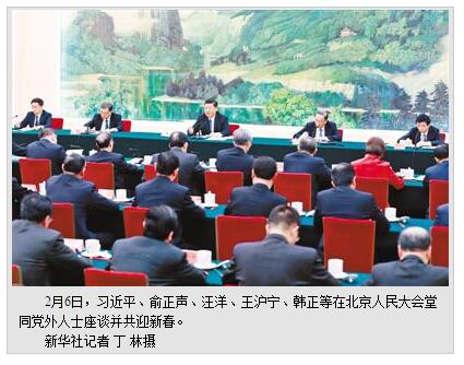 新春佳节来临之际,中共中央总书记、国家主席、中央军委主席习近平6日下午在人民大会堂同各民主党派中央、全国工商联负责人和无党派人士代表座谈并共迎新春。习近平代表中共中央,向各民主党派中央、全国工商联新当选的领导班子成员表示热烈祝贺,向各民主党派、工商联和无党派人士,向统一战线广大成员致以诚挚问候和新春祝福。他强调,中国特色社会主义进入新时代,多党合作要有新气象,思想共识要有新提高,履职尽责要有新作为,参政党要有新面貌,引导广大成员增进对中国共产党和中国特色社会主义的政治认同,使新时代多党合作展现出勃勃生机。